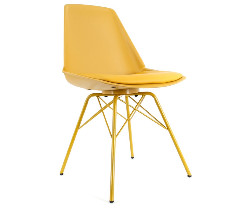 6 Zone dining chairs. 4yellow, 1 nordic grey/green, and 1 pink.
