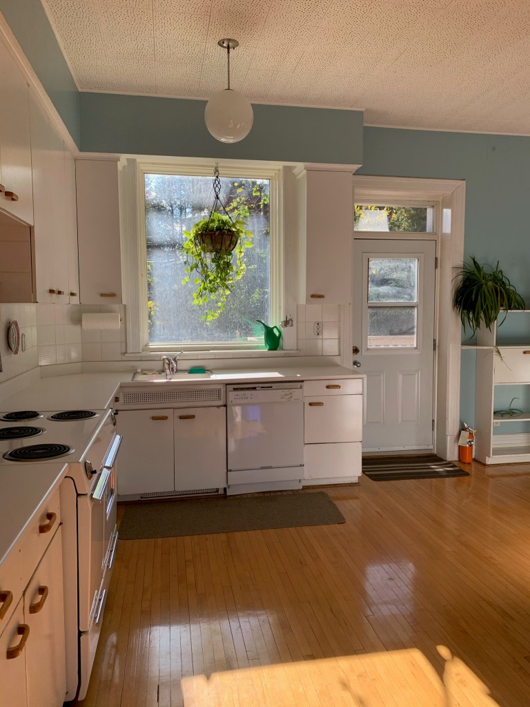 ^ A very “before” kitchen. Incredible light… drawings to come. Inspiration is a British “conservatory”โ style kitchen! Wine red cabinets, soapstone counters.